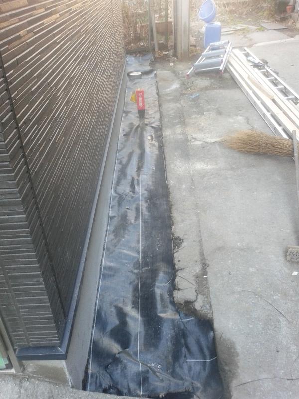 今日はアパートの外構工事で白砂利敷きの下地で整地をして防草シートを敷いてきました。
